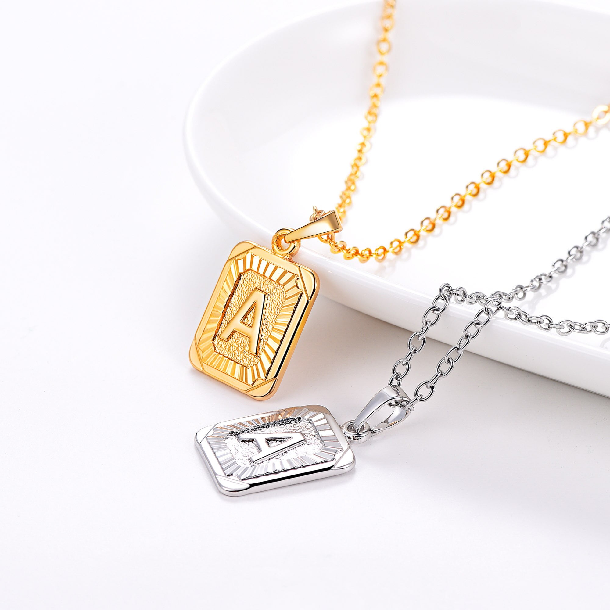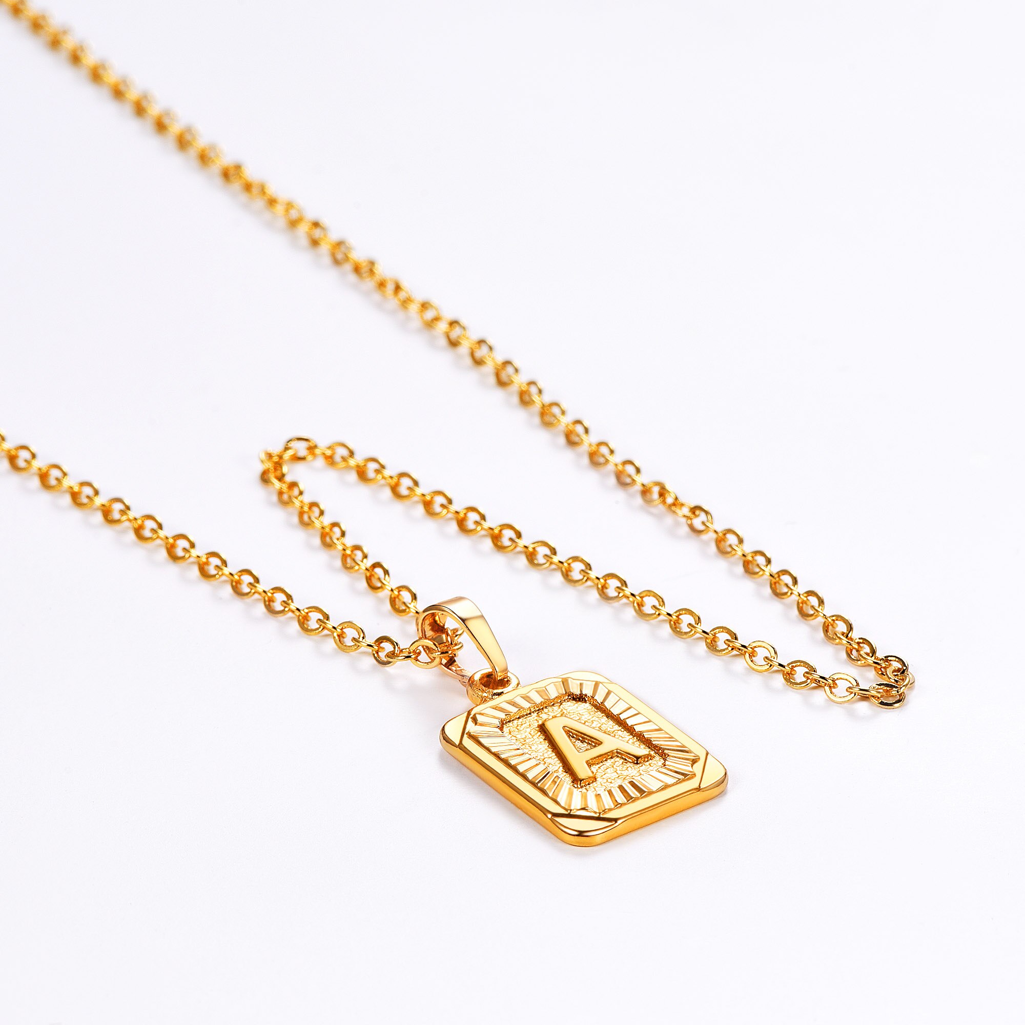 U7 Monogram Necklace For Women Men Boys 18k Gold Plated Square Script Initial Jewelry Letter Pendant Letter A Amazon Com
